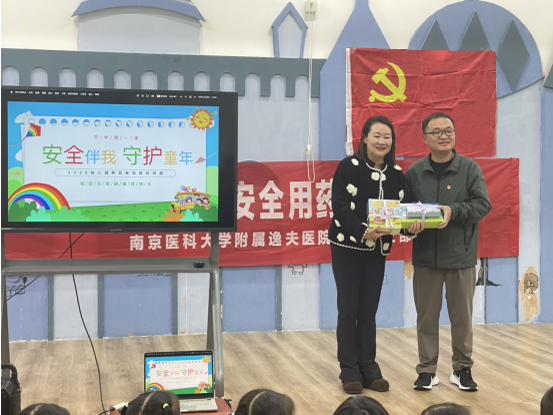 在金风送爽的秋日,为深入践行健康中国战略,充分发挥党员药师的专业特长,南京医科大学附属逸夫医院药学党支部于2025年10月21日走进向日葵幼儿园,开展"童心筑健康,药学伴成长"安全用药科普进校园主题党日活动,用专业与爱心为孩子们的健康成长保驾护航。本次活动特别针对幼儿园中班小朋友的认知特点,以“趣味互动+知识传递”为核心,设计三大特色环节,让健康知识在欢乐中传递。