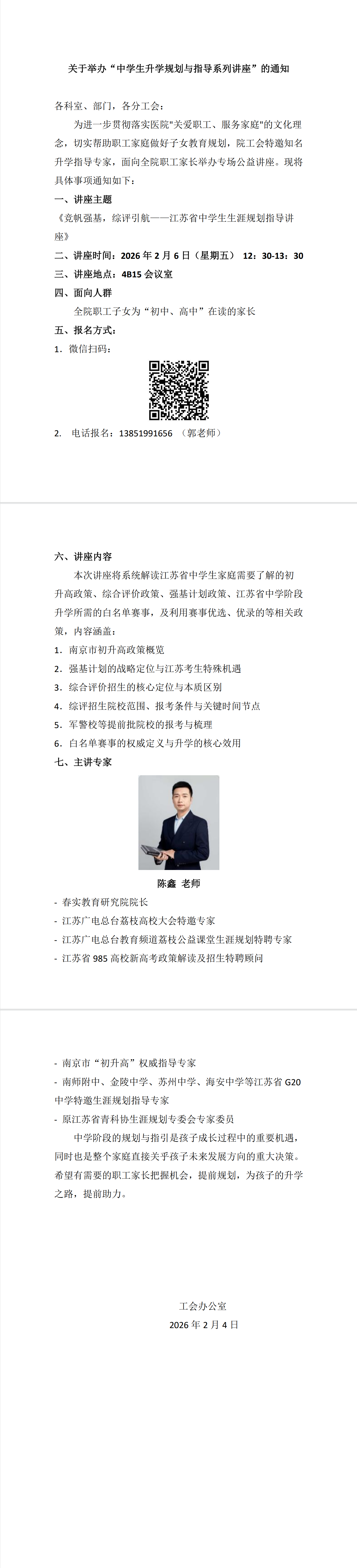 关于开展“中学生升学规划与指导系列讲座”的通知