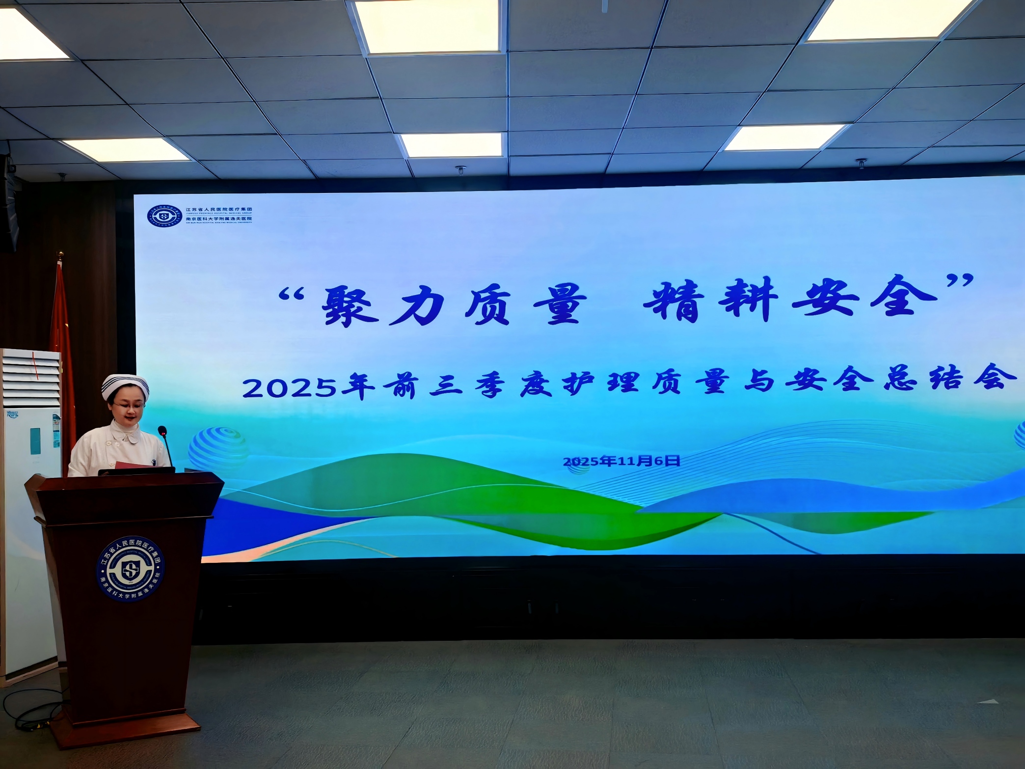 接下来由沈燕主任作《以责为纲,精护领航》专题汇报,全面总结了2025年前三季度的护理工作成效,深入剖析了存在的问题短板,并部署了提升路径。她强调,护理质量安全是医院的生命线,必须坚守“追求患者高效健康,坚守安全底线”的理念,杜绝因护理导致的意外损伤。针对检查发现的问题,护理部已完成16项护理质量考核标准、55项特殊科室标准及31项制度规范的修订,为全院护理同质化奠定了坚实基础。会议部署了六项重点工作:强化基层监管、补齐薄弱时段、推行信息化质控、提升管理骨干能力、优化管理工具、做好年度衔接。
