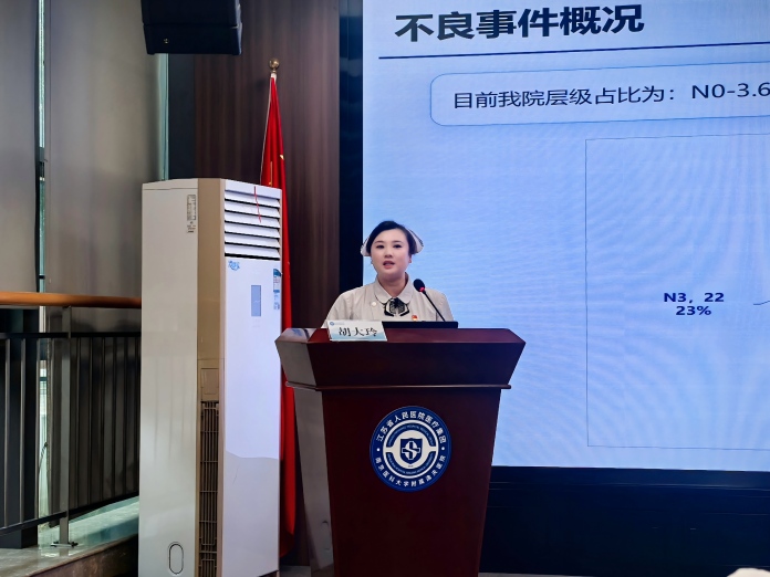 最后,护理部副主任胡大玲通报了近期护理不良事件的典型案例,包括给药错误、跌倒事件、采血错误等,通过“以案促改”强化质量安全意识。胡主任指出,护理工作无小事,每一个疏忽都可能带来严重后果。必须将不良事件转化为警示案例,举一反三,落实到日常工作中,防微杜渐,将隐患消灭在萌芽状态。