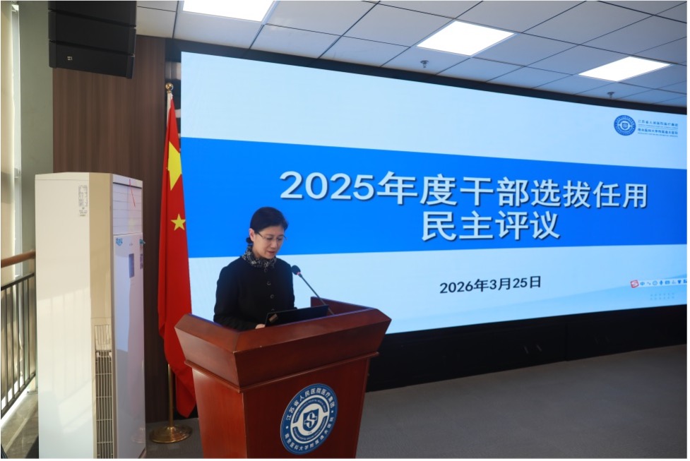 为深入贯彻落实新时代党的组织路线,全面规范干部选拔任用工作,切实强化干部监督管理,3月25日下午,我院在E105会议室召开2025年度干部选拔任用工作民主评议会。南京医科大学党委副书记徐珊同志出席会议并讲话,会议由我院院长管晓翔同志主持。南京医科大学党委组织部相关同志、医院领导班子成员、各科室负责人、职能部门中层干部、护士长、党总支及党支部书记、党支部委员、一线员工代表等参会。