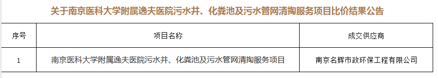 关于南京医科大学附属逸夫医院污水井、化粪池及污水管网清掏服务项目比价结果公告