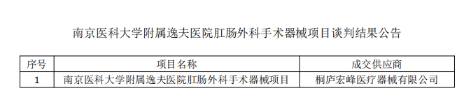 南京医科大学附属逸夫医院肛肠外科手术器械项目谈判结果公告