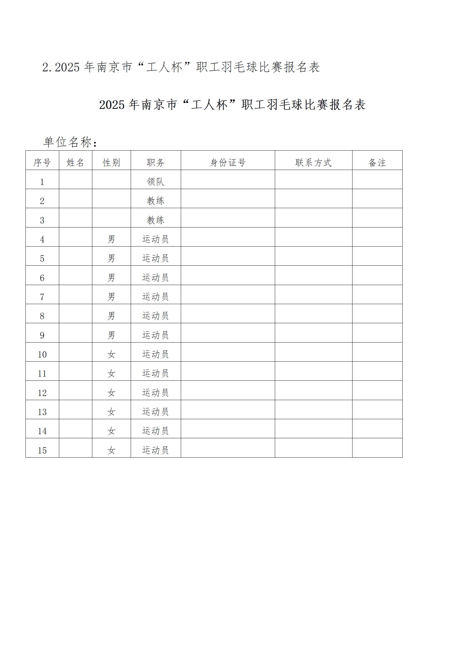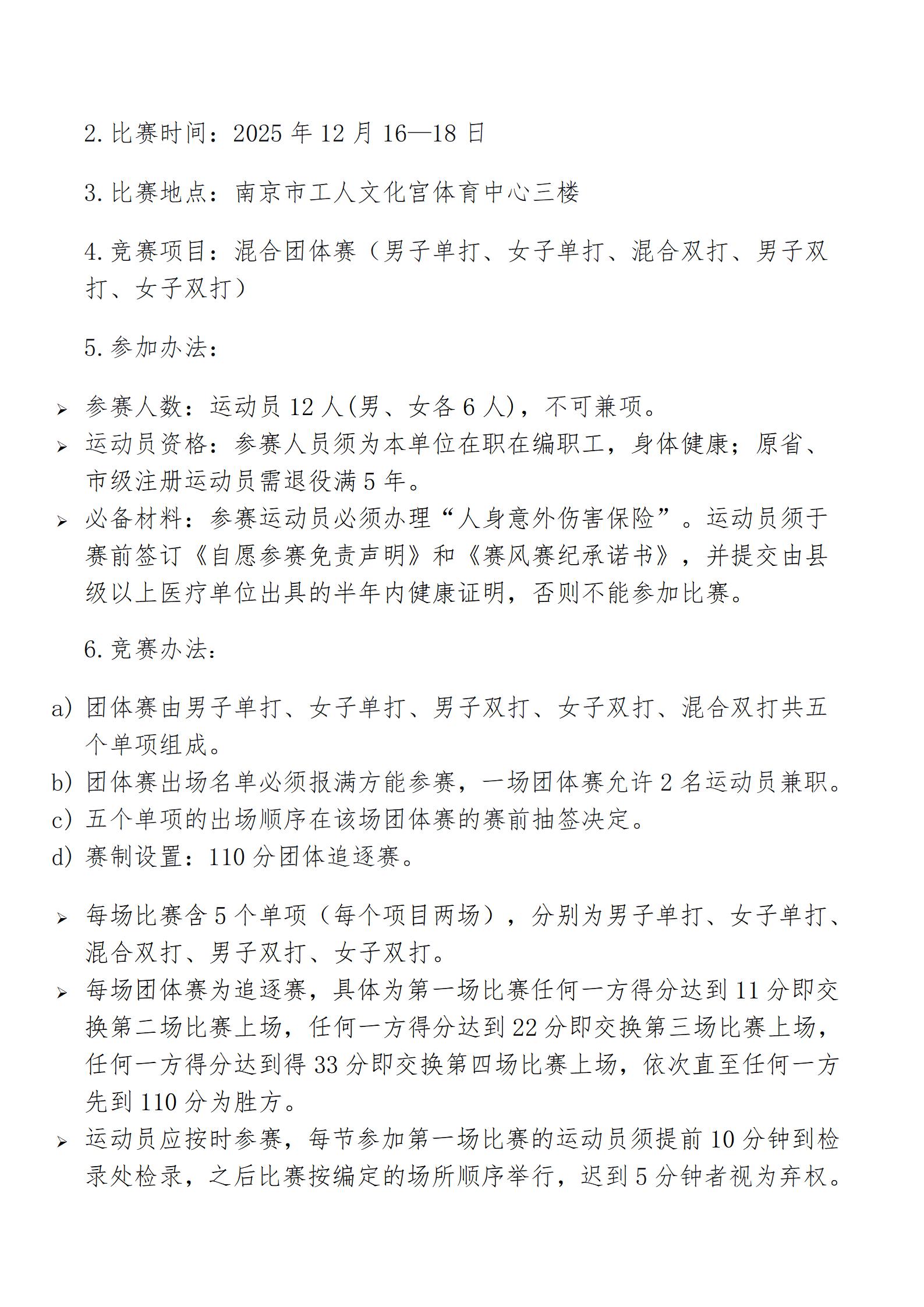 关于组织参加2025年南京市“工人杯”职工体育系列赛事活动的通知