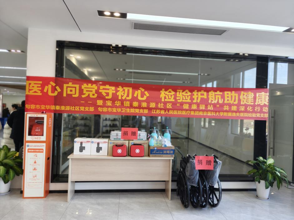 为提升社区应急救护能力,检验党支部向秦淮源社区捐赠AED便携式除颤仪、电子血压计及医疗箱、急救包等急需物资,助力完善社区健康驿站硬件配置,提升突发事件处置能力。